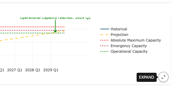 - Capacity Benchmarking: Compares current and projected prison populations against UDC’s 3 capacity measures to assess system pressures and available space.
